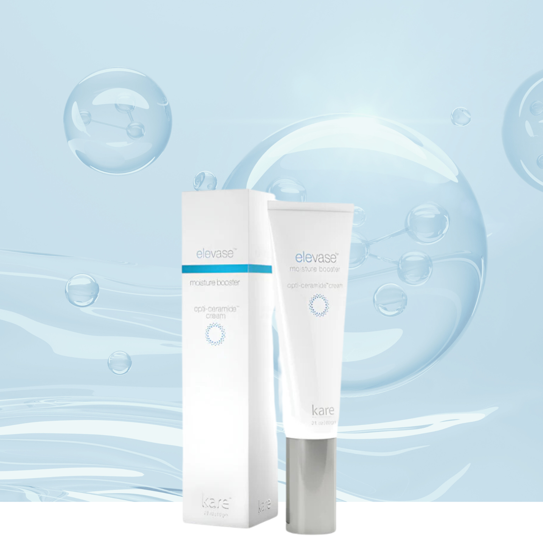 Elevase Moisture Booster contains opti-ceramides to deeply hydrate and moisturize all skin types. This powerful formula enhances the skin’s natural moisture barrier, and is ideal for anyone using Retin-A, Retinol creams, or Retinoids to reduce dryness and peeling. Ceramides are an essential element of healthy skin because they form part of the skin’s natural structure. In fact, leading research has associated a loss of ceramide content to aging skin. So why not lock in as much moisture as possible?