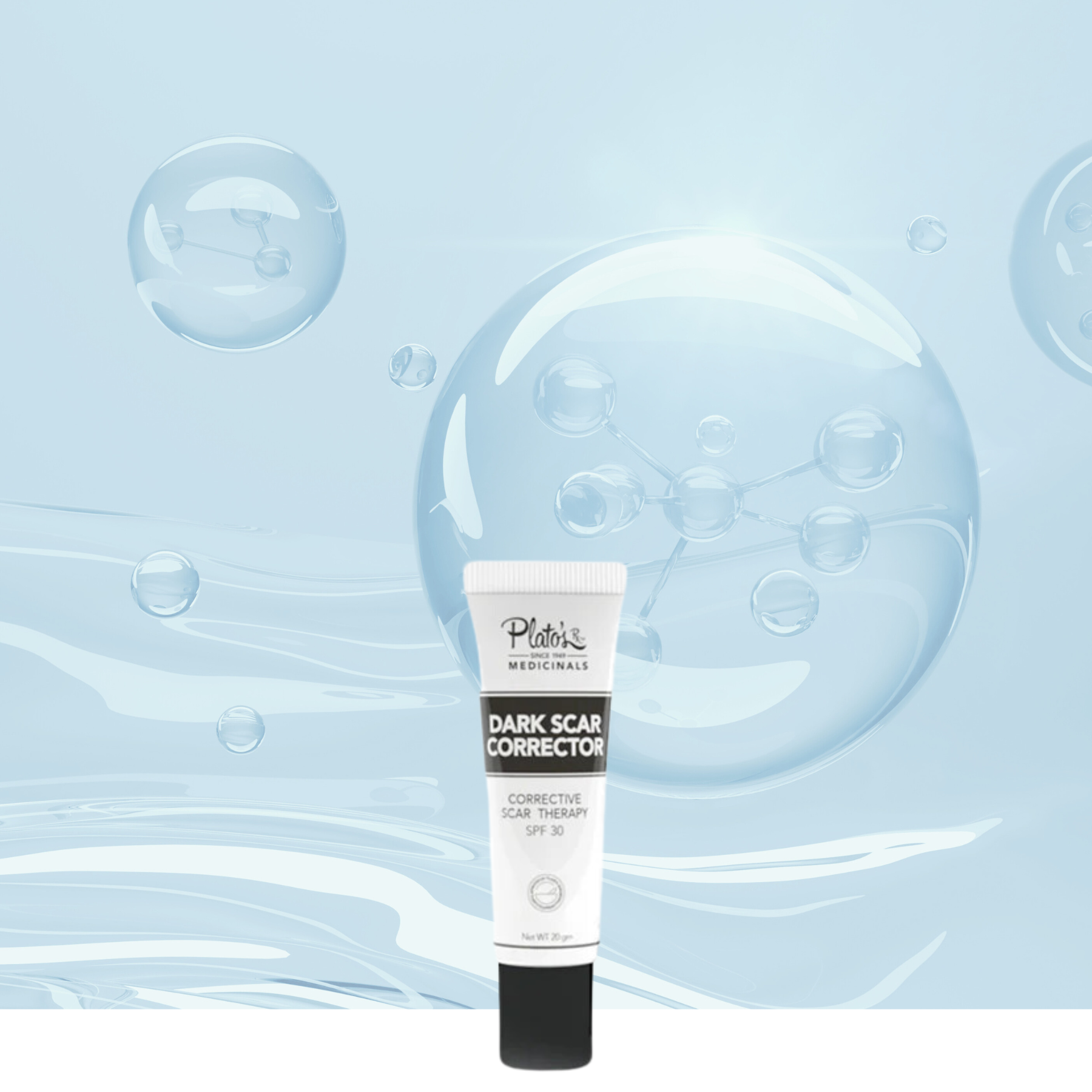 Plato's Dark Scar Corrector is an advanced treatment designed to address multiple facets of scar management—correcting pigmentation, protecting from sun damage, and preventing the formation of new dark spots on scars.